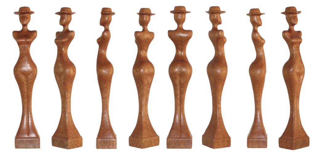 Cette sculpture « Élégante » est en Niové. Série « La Femme Debout en Poésie », fière et en élégance.