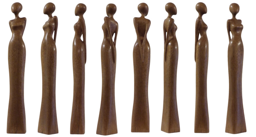 Cette sculpture « Enraciner les Rêves » est en Niové. Série « La Femme Debout en Poésie », fière et en élégance.