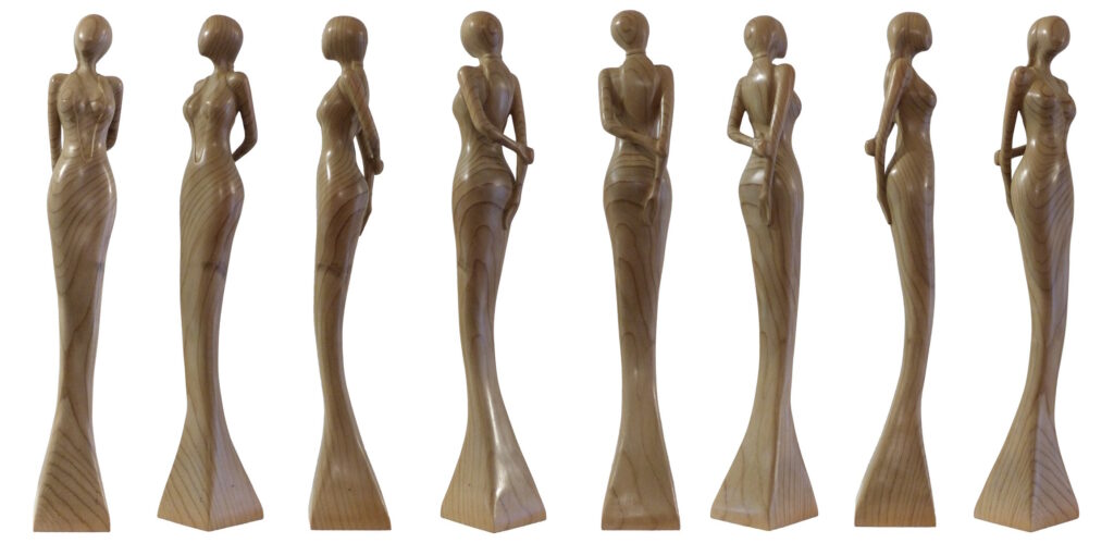 Cette sculpture « Éphémère » est en Cèdre du Liban. Série « La Femme Debout en Poésie », fière et en élégance.