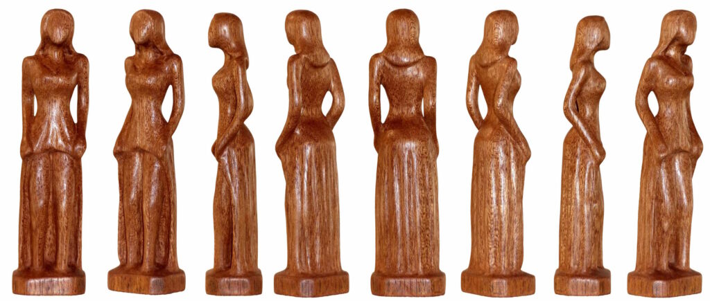 Cette sculpture « Intemporelle » est en Niové. Série « La Femme Debout en Poésie », fière et en élégance.